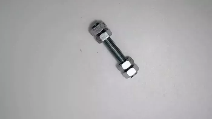 По краям шпильки закручиваем по две гайки на сторону. Располагаем их так, чтобы крайние были не дальше 5 мм от конца шпильки. При этом внутренние гайки не должны соприкасаться с наружными – между ними следует оставить такой же интервал.