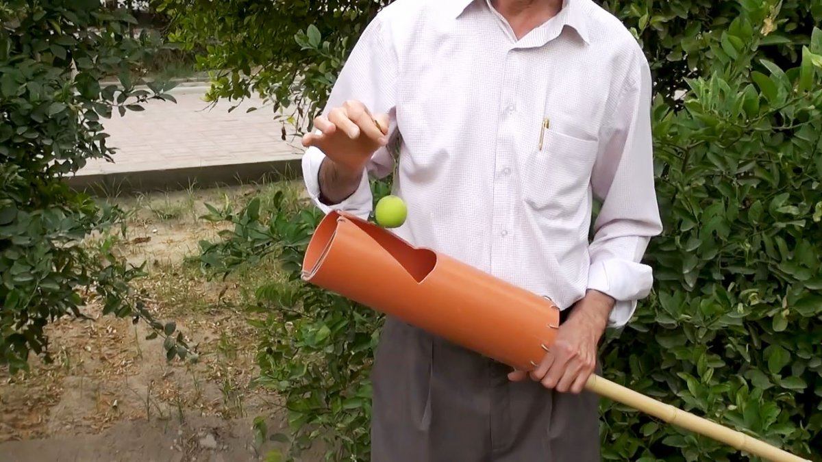 В сети предлагается несколько вариантов приспособлений для сборки фруктов, но у описанного нами есть одно важное преимущество: оно работает как в вертикальном, так и в горизонтальном положении. Это намного облегчает работы в саду.