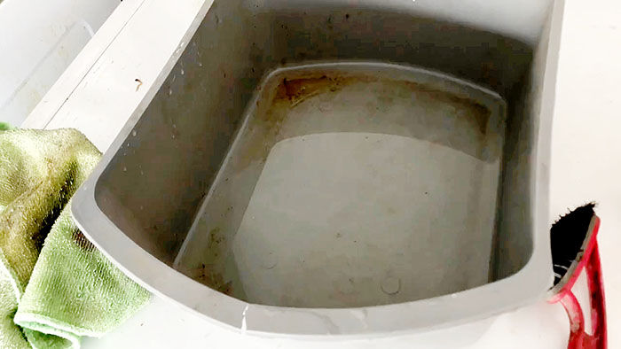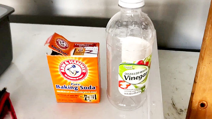 Берем таз с водой, уксус, соду, щетку. Работать можно без перчаток.