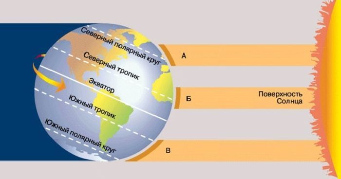 Поскольку Северный и Южный полюса расположены по краям Земли, солнечные лучи падают на них не под прямым углом, как это происходит на экваторе, а лишь вскользь касаются поверхности. Учитывая, что радиус Земли равен 6371 км, то именно на столько расстояние полюсов от Солнца больше, чем у экватора. Установлено, что с каждым километром в атмосферу температура меняется на 6.5 градусов. Получается, на полюсах температура должна быть ниже примерно на 41 градус, чем на экваторе.