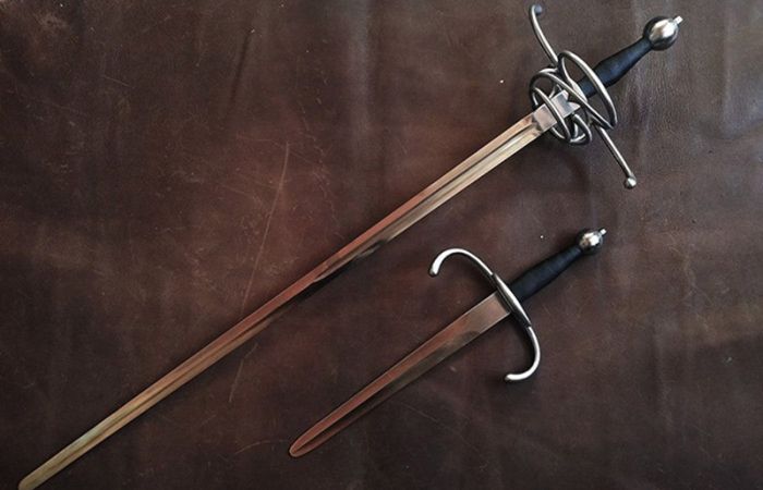 Материал и техника изготовления также подчёркивают практичность шпаги. Клинки ковались из высокоуглеродистой стали, проходили закалку и тщательную шлифовку. Эфес, включая гарду и рукоять, могли делать с элементами декора, но его основа всегда была функциональной и прочной. Рукоять же обычно обматывалась проволокой или кожей, чтобы обеспечить надёжный хват, даже если ладонь вспотеет во время схватки. Всё в этом оружии было подчинено одной цели — эффективному выживанию в бою. От владельца же требовалась не только скорость реакции, но и значительная физическая сила, особенно в мышцах предплечья и кисти. Ему приходилось часами тренироваться, чтобы в реальной стычке уверенно и подолгу пользоваться довольно тяжёлым оружием.