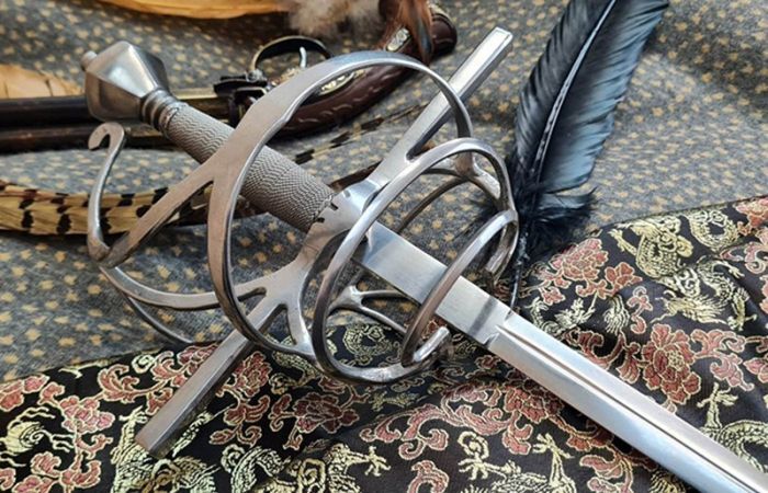 Боевое предназначение оружия выдавала гарда — та самая металлическая конструкция, защищавшая кисть. К началу XVII века она эволюционировала от простой крестовины до сложной корзинки или чаши, сплетённой из прочных дужек. И она тоже была не для красоты, а служила настоящим щитом для вооружённой руки, надёжно прикрывая пальцы от острия противника. В реальном поединке, в отличие от киношных стычек, удары часто направлялись именно по кисти, чтобы обезоружить оппонента. При помощи гарды блокировали и отводили вражеский клинок без риска получить тяжёлую травму.