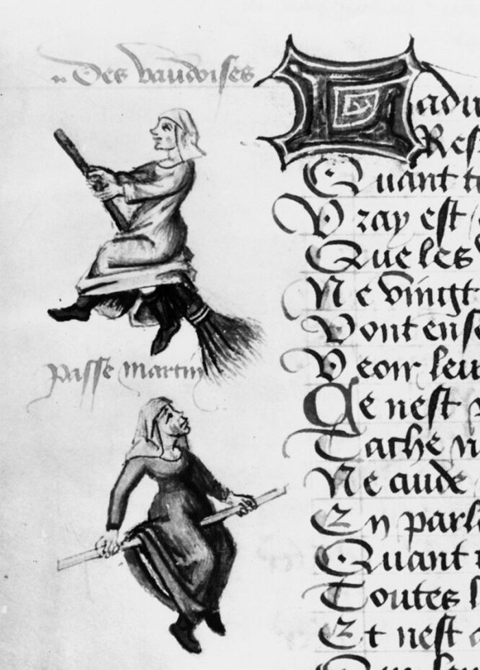 Самое раннее из известных изображений ведьм на метлах датируется 1451 годом, когда две необычные иллюстрации появились в рукописи французского поэта Мартина Ле Франка «Защитник дам». На этих рисунках одна женщина парит в воздухе на метле, а другая летает на простой белой палке. Обе носят головные платки, которые идентифицируют их как вальденсов, участниц секты, основанной в XII веке. Они были заклеймены католической церковью как еретики, отчасти потому, что они позволили женщинам стать священниками.