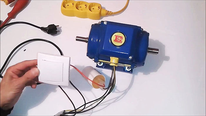 4. Удобно оперативно менять направление вращения, переключая конденсатор с фазного проводника на нулевой. Двухполюсный выключатель подаст питание двигателя.