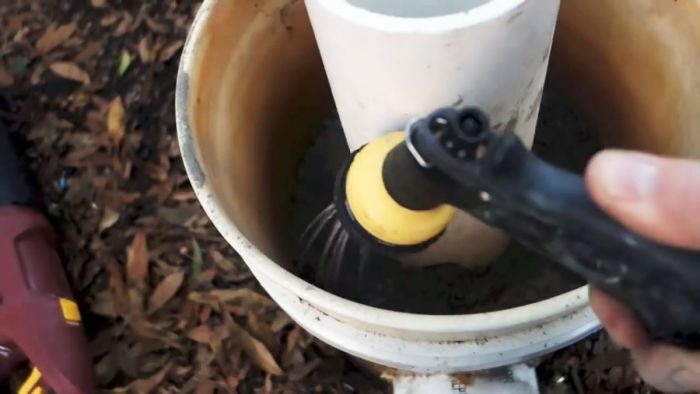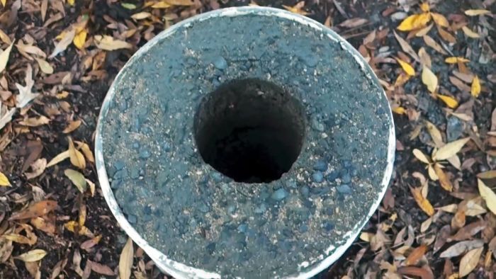 Дайте примерно час для схватывания раствора и осторожно удалите пластиковые трубы. Оставьте емкость на ночь для схватывания раствора.