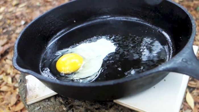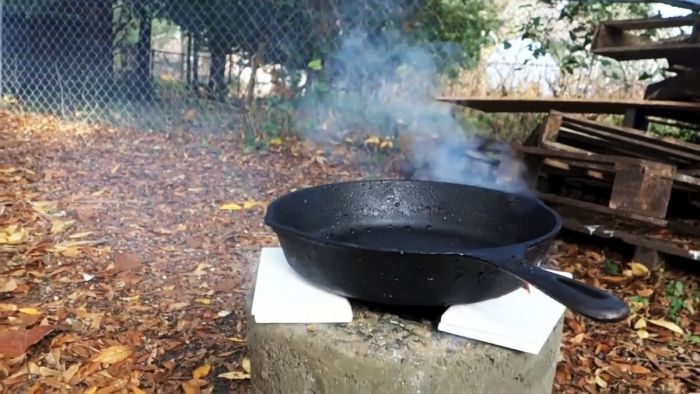 Испытайте функциональность печи, зажгите в ней огонь. В качестве подставок под сковороду можно использовать узкие отрезки керамической плитки.