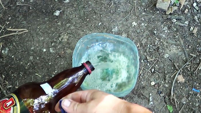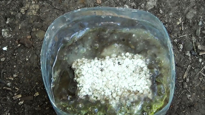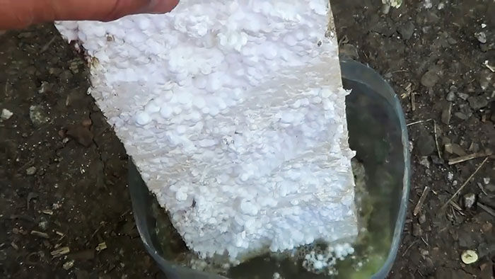 Для приготовления смеси надо иметь подходящую емкость (годится отрезанная пятилитровая бутыль из-под воды), примерно 250 мл бензина и куски пенопласта от старых упаковок или утеплителя.