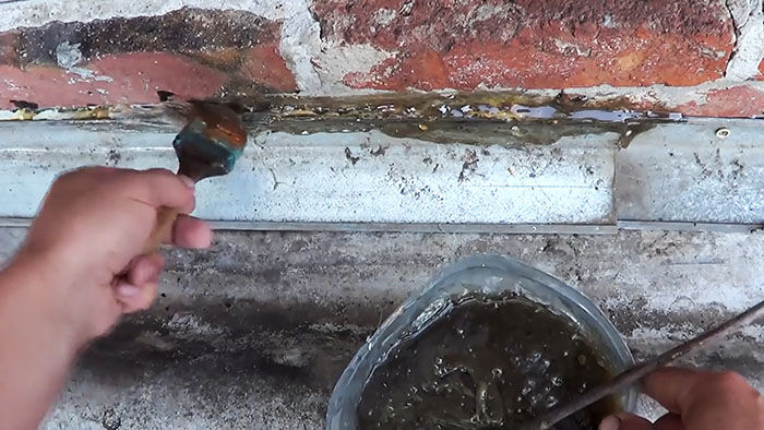 Стыки, трещины и отверстия промазываются малярной кисточкой. Начинать пользоваться клеем надо немедленно, бензин быстро испаряется и масса затвердевает. Конкретное время затвердевания зависит от толщины наносимого слоя, в среднем для этого нужно 40–50 минут.