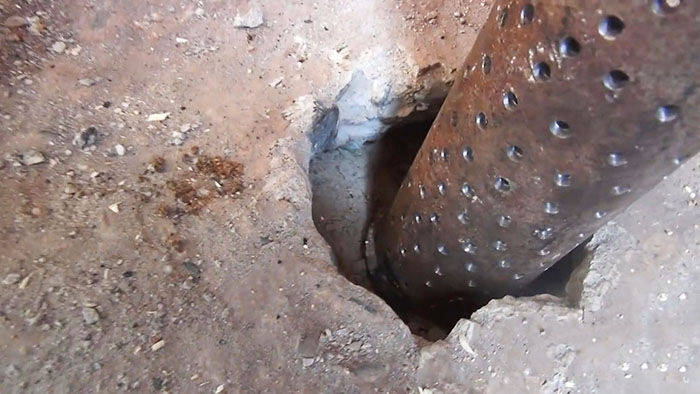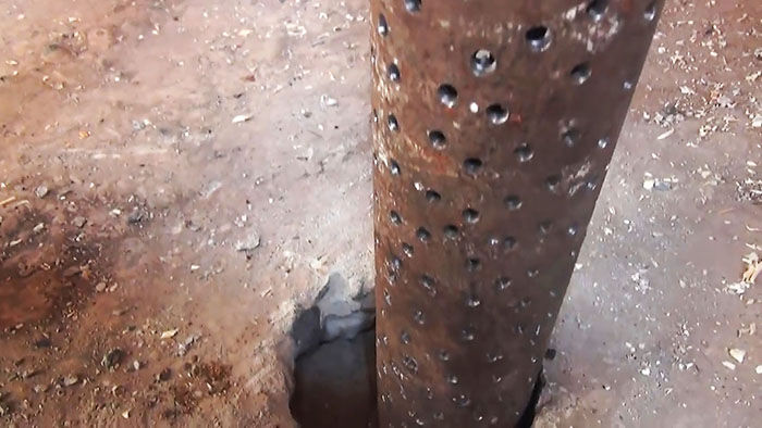 Для пропуска воды в конце трубы следует просверлить в шахматном порядке отверстия диаметром 3–5 мм.