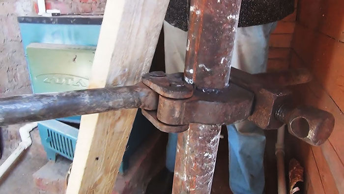 Затягиваем зажимной механизм на трубу, чтобы было по чему ударять.