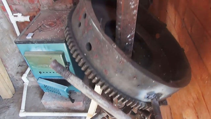 Для облегчения работы к маховику надо с двух сторон приварить ручки.