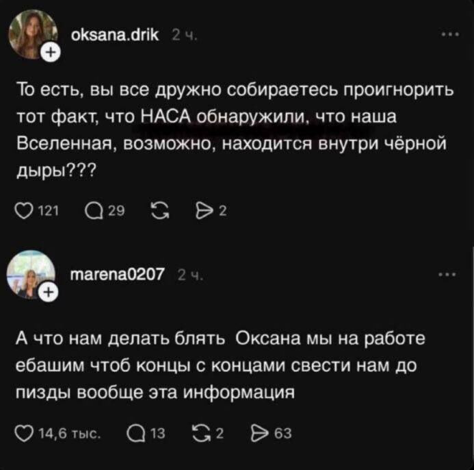 Добро пожаловать в место, где собраны лучшие мемы, забавные картинки с подписями и самые остроумные комментарии из социальных сетей! Если хотите поднять себе настроение и начать день с улыбки, то вы попали по адресу. Здесь вас ждёт большая подборка смешных и прикольных изображений, а также немного дерзких и пошлых шуток — всё, чтобы зарядить вас позитивом и хорошим настроением на весь день. Не упустите шанс посмеяться от души и поделиться этим весельем с друзьями!