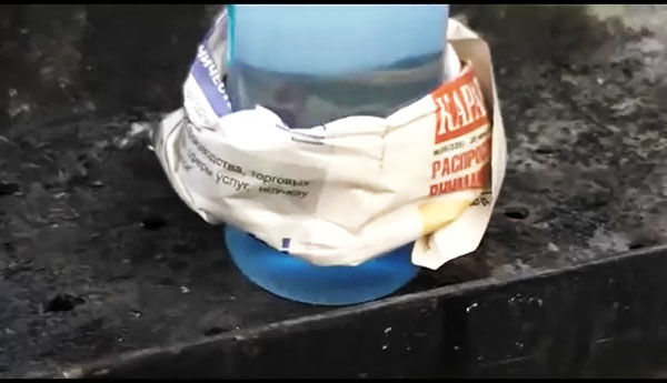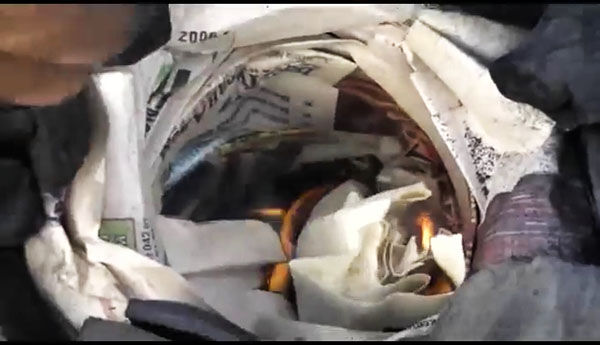 Ну а теперь разжигаем! Для этого пригодится небольшой обрывок бумаги. Зажигаем его.