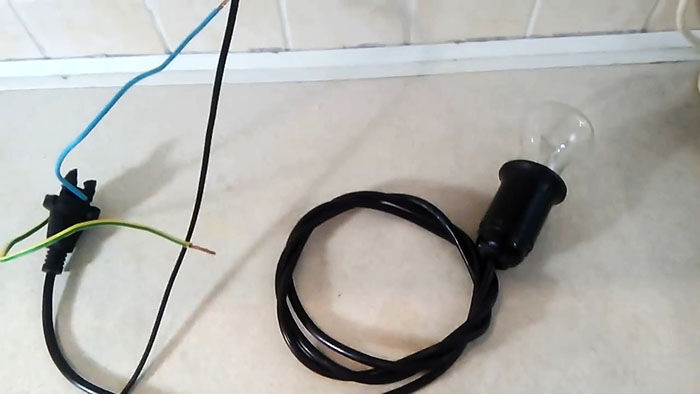 Я примотал к вилке провода и заизолировал все изолентой. В простонародье, лампочка с выведенными оголенными проводами называется «контролькой».