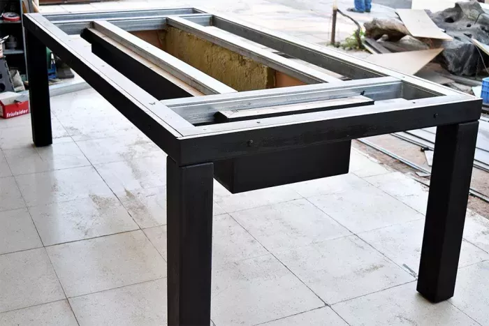 Каркас стола состоит из рамы и четырех ножек, сделанных из профтрубы 60х60. Начинаем изготовление его с рамы, размеры которой 220х100 см.