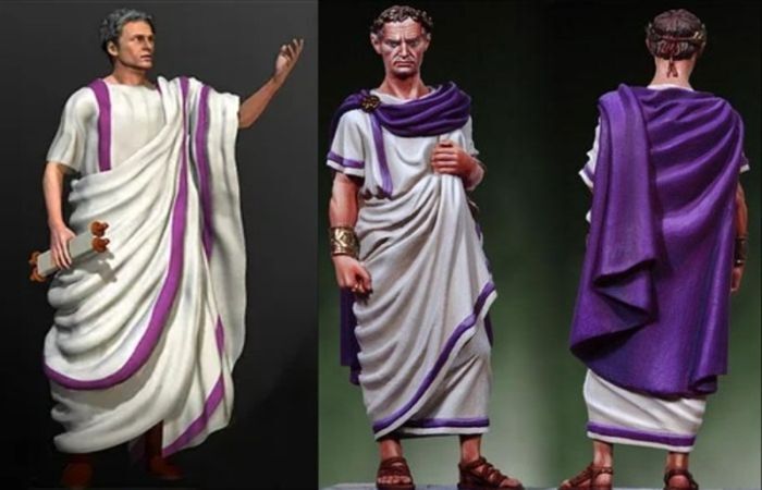 Люди, получив необычайно яркий, глубокий и редкий цвет, использовали его, чтобы подчеркнуть свое превосходство, ведь купить даже грамм красителя мог не каждый богатый, а о бедных и говорить нечего. Капля пурпурного красителя стоила дороже такой же капли золота, из-за чего им окрашивали порой только часть одежды. Но достаточно было даже пурпурной полоски на тоге, чтобы понять статус человека: сенаторская полоска указывала на высоко занимаемую должность, всадническая – ее носили представители сословия всадников, потому что стояли на второй ступени после сенаторов, а также магистраты, устраивавшие гладиаторские бои, консулы. Полностью в пурпурную одежду мог облачиться император и иногда полководец в качестве поощрения за триумфальную победу.