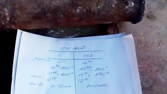 Чтобы оценить эффективность вечного полена можно сделать сравнительный эксперимент с использованием одинакового количества дров. Первый день разжечь котел с поленом, измерив получаемую температуру и продолжительностью горения, а на второй день топить печку без устройства. В моем случае с вечным поленом горение практически с аналогичной температурой продолжалось на 15% дольше. Это и есть экономия на дровах, позволяющая израсходовать за зиму намного меньше топлива.