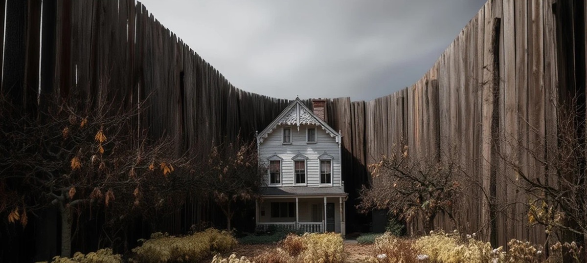 Строительство велось с пугающей скоростью. С трёх сторон участок Юнга был обнесён глухой стеной, лишённой малейшего намёка на декоративность. Массивные балки и грубые доски плотно пригонялись друг к другу, образуя непроницаемый барьер. Когда последние гвозди были забиты, дом семьи Юнг оказался заперт в гигантском деревянном саркофаге. С этого момента жизнь Николаса, его жены Розины и их детей превратилась в сюрреалистический кошмар. Семья, которая раньше наслаждалась панорамным видом на залив Сан–Франциско и золотистыми закатами, теперь просыпалась в вечных сумерках. Солнечный свет, который раньше заливал их комнаты, теперь касался лишь самой верхушки крыши на короткий час в полдень. Всё остальное время дом находился в густой, мертвенной тени, отбрасываемой исполинским творением Крокера.