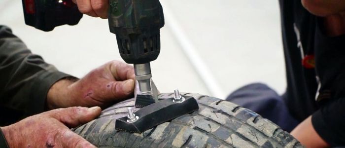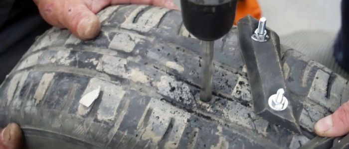 Для фиксации элементов необходимы метизы М6 соответствующей дины. Зацепы делаются из ремня профиля «D» (верхняя ширина 32 мм, нижняя 19,2 мм). Ремень на куски рубится топором, для точности дины кусков удар делается кувалдой. Отверстия просверливаются обыкновенной дрелью и сверлом по металлу, гайки легче закручивать шуруповертом. Флиппер делается из старых камер, приклеивается к покрышкам резиновым клеем. Для отрезания болтиков требуется болгарка с абразивным диском.