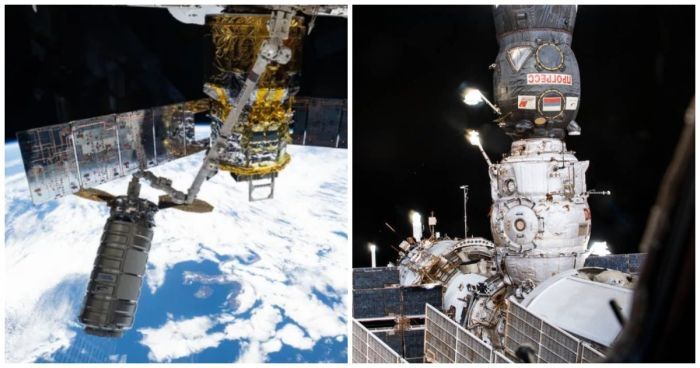 Примерно такое же "чудо" впервые за 25 лет произошло на Международной космической станции. Все восемь стыковочных узлов, которые есть на орбитальной станции, одновременно заняты космическими кораблями.
