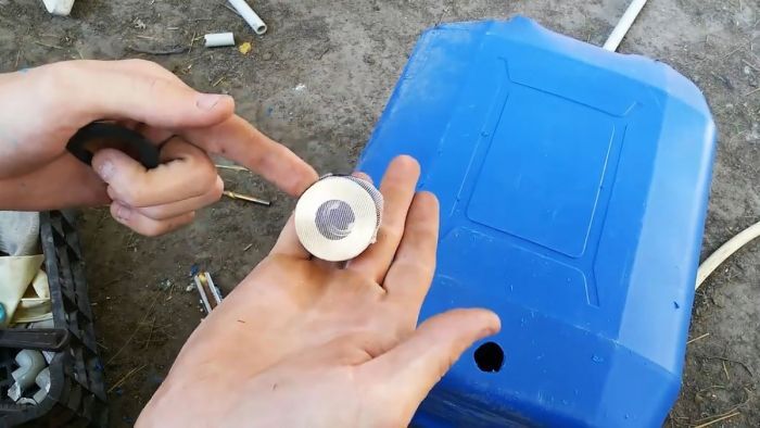 Если жидкость из канистры планируется подавать в очень маленькие жиклеры, то установите на входе врезки фильтр. Вырежьте круг из сеточки с соответствующими ячейками и прикрепите к входному отверстию.