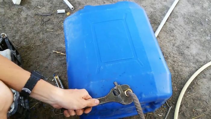 Резьбовую часть врезки через горловину забросьте в канистру.