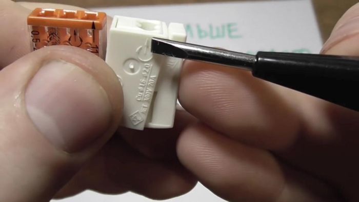 При отсутствии стриппера зачистку можно сделать вручную и проконтролировать ее длину приложив конец провода к специальной метке на обратной стороне зажима, которая есть на любой серии. Если зачистить слишком коротко, то изоляция попадет в зажим и контакта не будет.