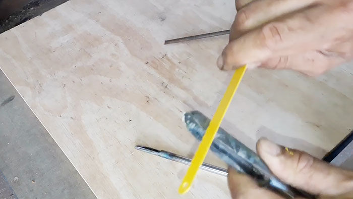 Как только прошедший закалку инструмент полностью охладится и примет температуру окружающей среды, подвергнем его испытанию на твердость. Для этого будем пытаться обрабатывать его полотном ножовочной пилы по металлу и даже напильником. Но ни тот, ни другой инструмент даже не оставил следов на закаленных поверхностях. Это признак того, что закалка проведена качественно.