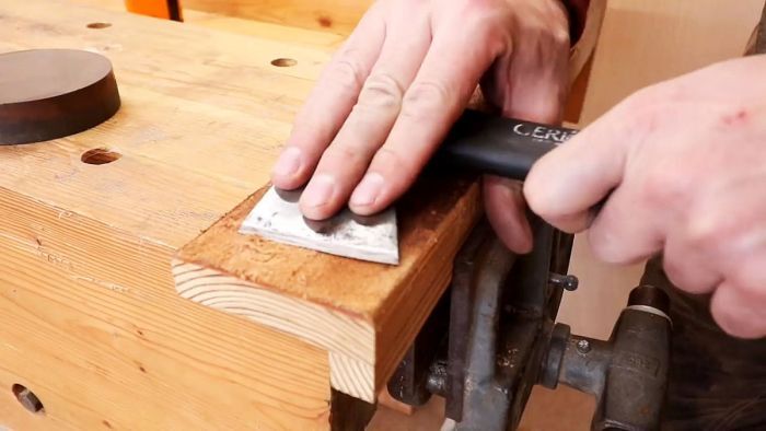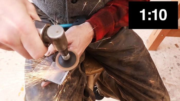 Конечно, способ заточки режуще-колющего инструмента УШМ или болгаркой далеко не новый. Но интересен сам эффект от работы этих дисков. Для чистоты эксперимента попробуем разрубить топором металлические предметы, например, ненужный напильник. Безусловно, лезвие большинства из топоров не рассчитано на рубку металла. Тем будет интереснее это сделать после того, как мы его наточим.